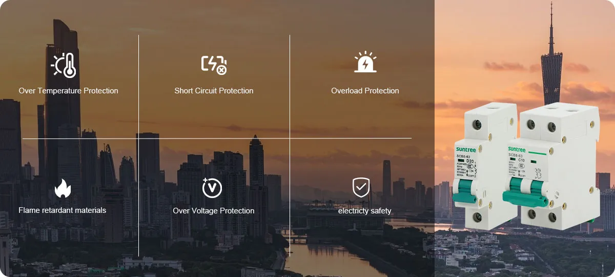 • Volume réduit et courant élevé, économie d'espace d'installation. Le disjoncteur miniature de courant nominal 63 A ne mesure que 18 mm de largeur, ce qui permet d'économiser 30 % d'espace.