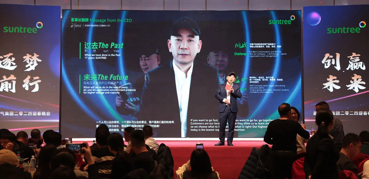 Le 14 janvier 2024, la cérémonie de fin d'année du groupe SUNTREE Electric s'est tenue avec succès à l'hôtel Xinxinya.Le thème de la conférence annuelle est « Poursuivre l'avenir », visant à passer en revue les réalisations de l'année passée et à anticiper le plan de développement futur.