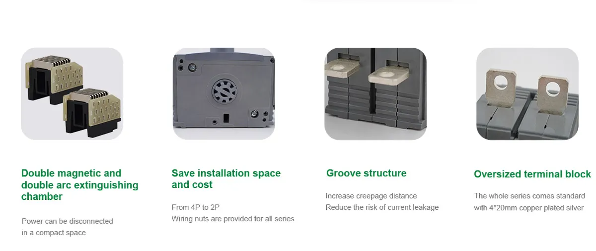 • Tous les matériaux de contact sont en alliage de cuivre plaqué argent, et possèdent deux surfaces de contact séparées.