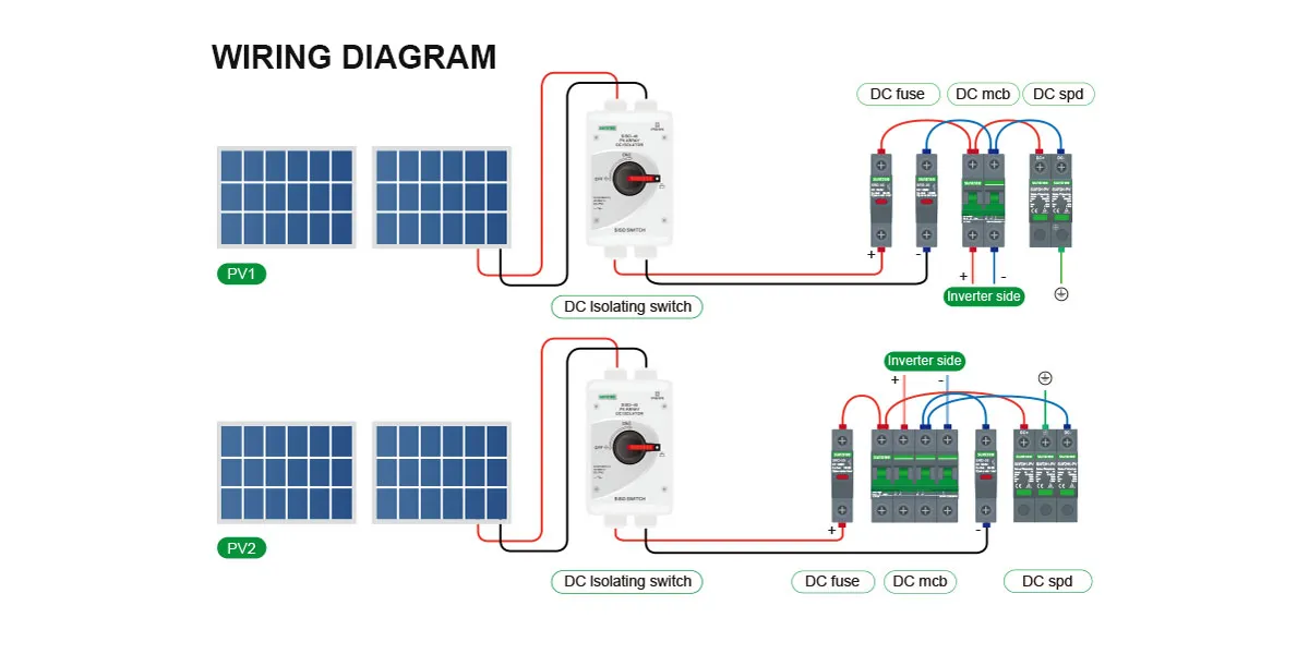 • Produits CC avec accessoires complets, pour systèmes photovoltaïques et de stockage d'énergie
