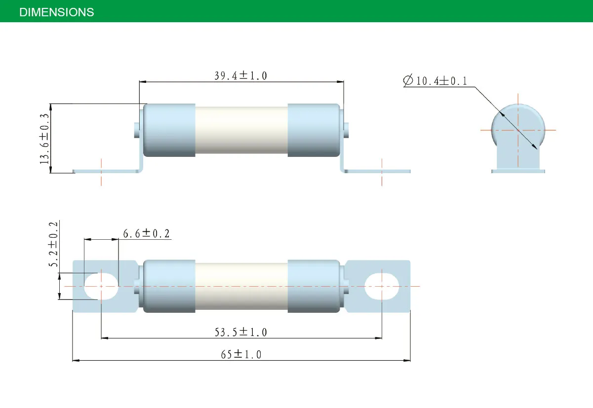 • Description du matériau :Céramique à haute résistance en alumine 95 et élément de fusible en matériau importé.