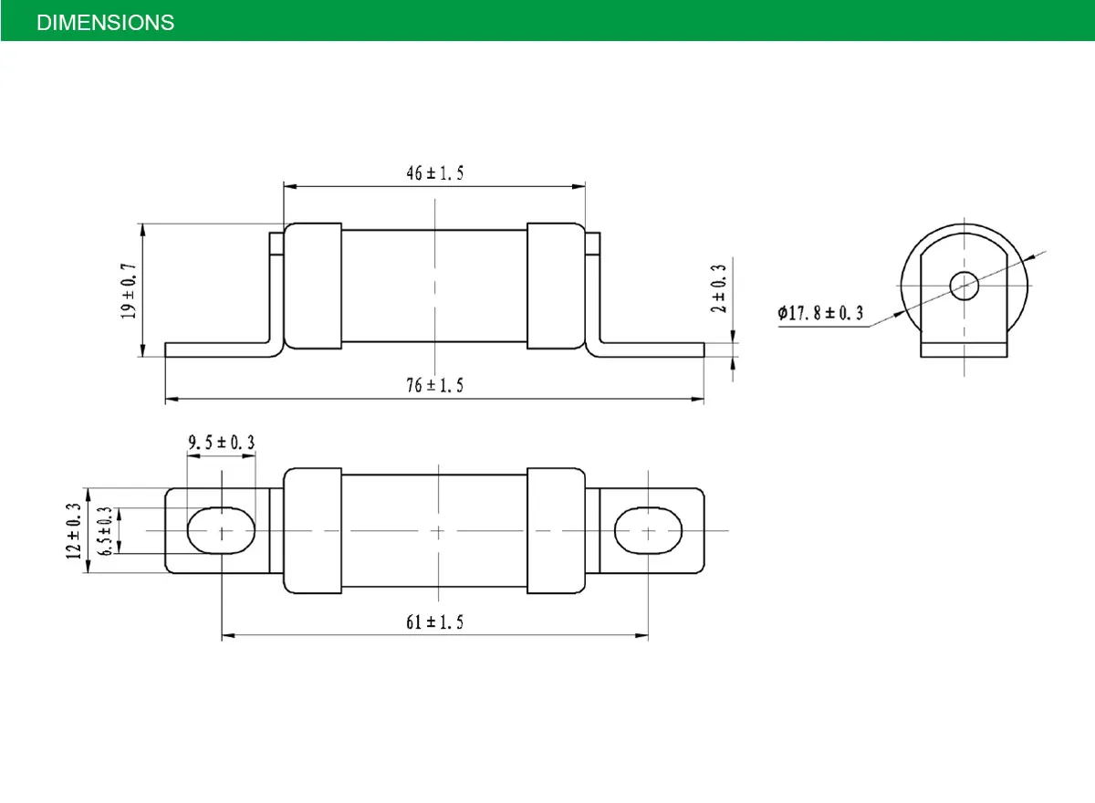 • Description du matériau :Céramique à haute résistance en alumine 95 et élément de fusible en matériau importé.
