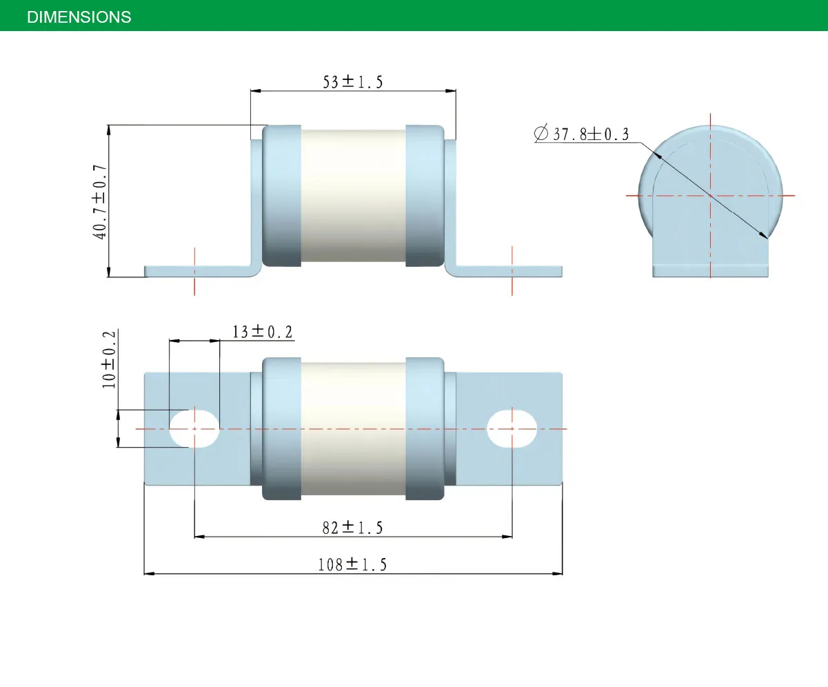 • Description du matériau :Céramique à haute résistance en alumine 95 et élément de fusible en matériau importé.