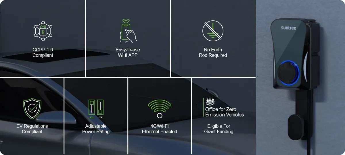 • Conforme aux réglementations britanniques sur les points de charge intelligents, y compris la sécurité contre les tampering