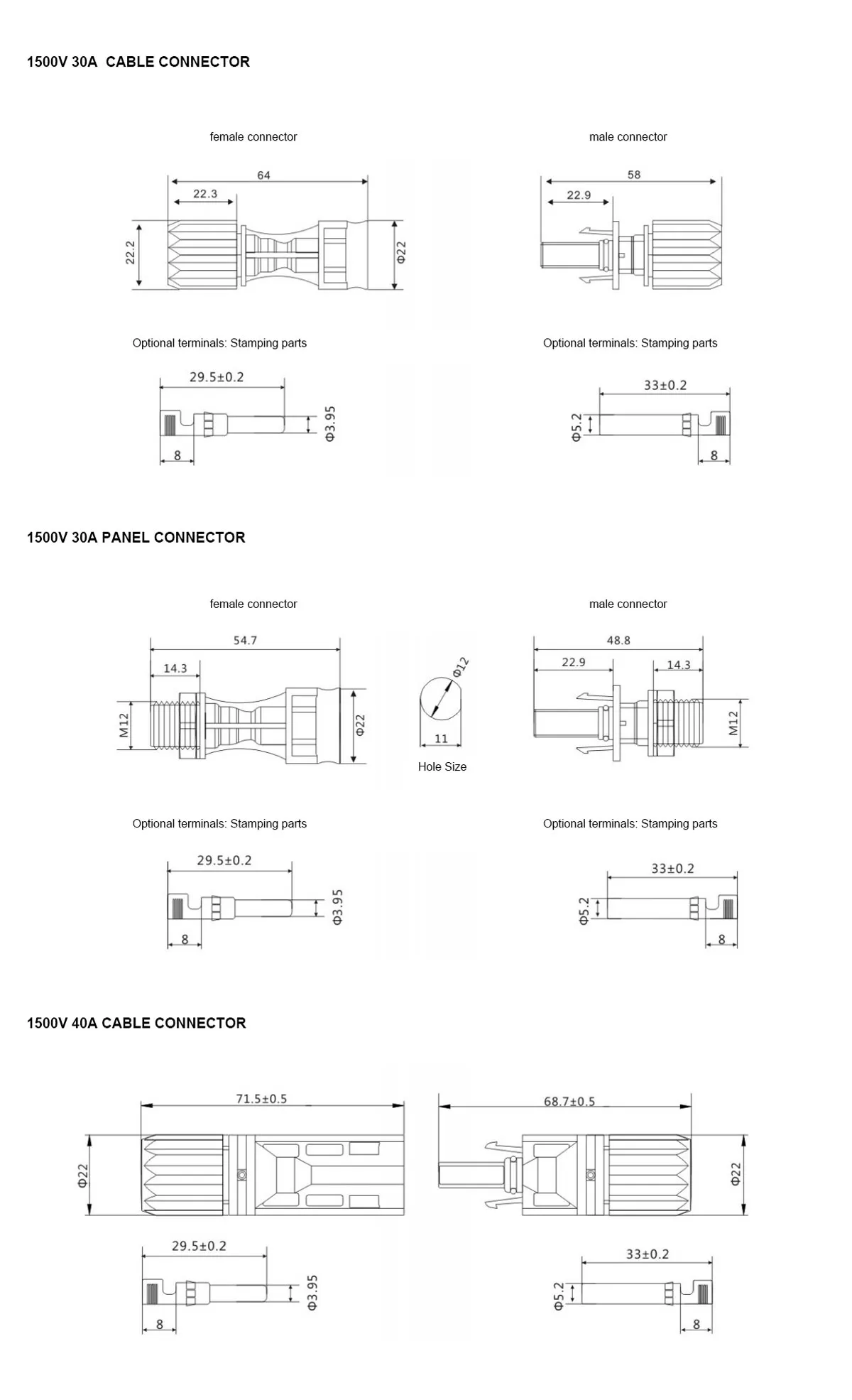 Câble adapté 2,5mm² ~6mm² / 14AWG~10AWG 2,5mm² ~6mm² / 14AWG~10AWG 2,5mm² ~10mm² / 14AWG~8AWG